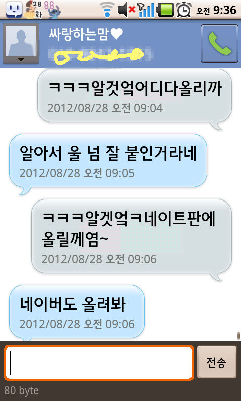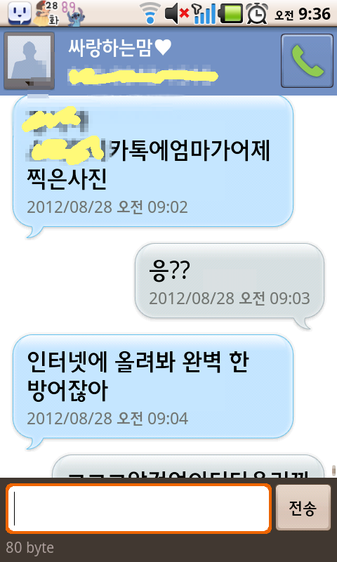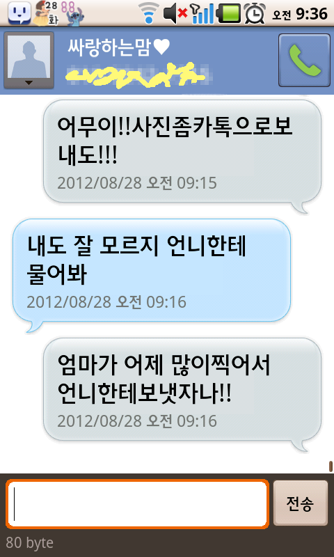 회사에 가신 울어무이께 문자가왔어요!!! 살아계시군요 나의 마덜~@
