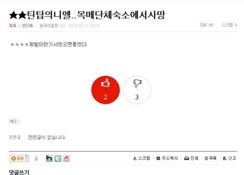 '틴재기를 일삼던 무명그룹 틴탑 멤버들 전원 숙소에서 목맨체 자살'?? 이거뭐냐 진짜로 이러면 좋냐고...