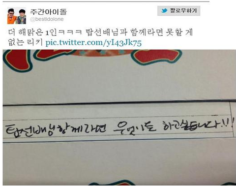 내가알기론 틴탑롤모델이빅뱅이라고.. 틴탑 빅뱅친해져쓰면조켓네좋은선후배사이될거가틈 엔젤분들ㅈ친해져욬ㅋㅋㅋ저번에판베패러디한것도되게귀엽게보고잇엇는데 ㅋㅋㅋ 아 ㅋㅋㅋ 암튼 늦엇지만 권지용생일축하하고 ! 친해져요 엔젤분들 ㅋㅋ 훈훈한사진으로마무리 ㅋ