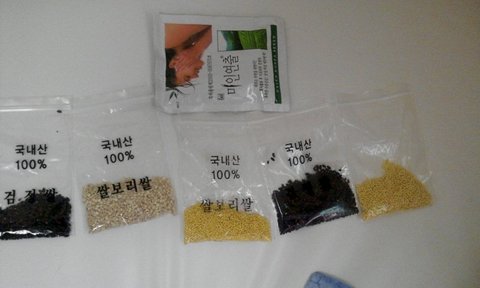 흑미, 쌀보리, 하나는 지금와서 생각하니까 모르겠음 차조인가? 노오랗게 되있는건데...