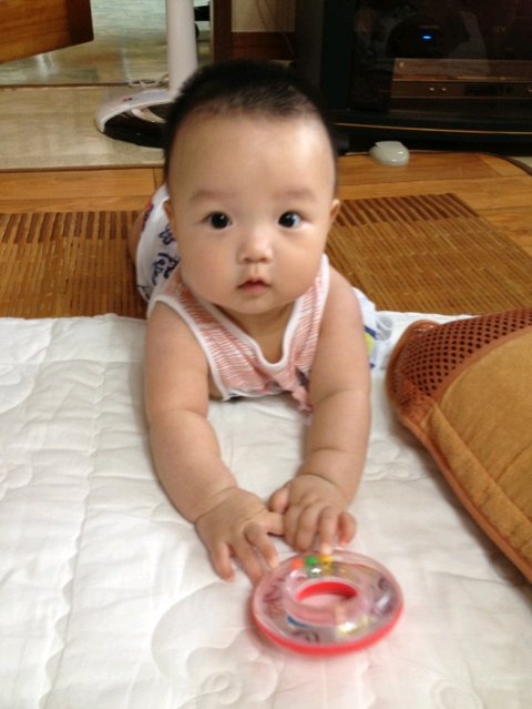 처음 뒤집어서 막 흥분한 날~ 계속 뒤집어보라고 독려중.. 보윤이는 그닥.. 시크하게 바라보심 ㅋㅋ
