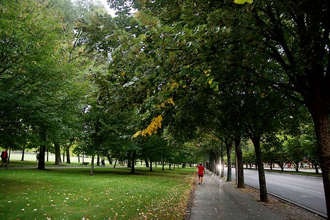 나무들이 쭉쭉 뻗어있고 벤치도 많고