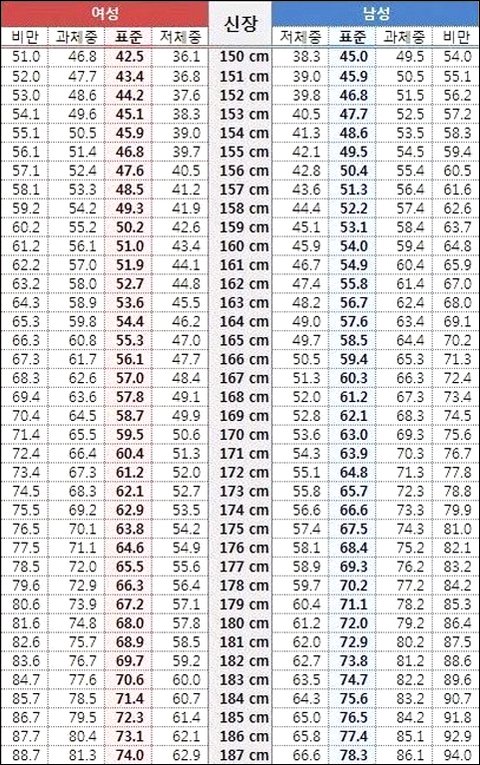 남자 키 174에 60kg이면 많이마른거야? 적당히 마른거야? 표준이야?