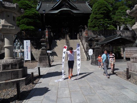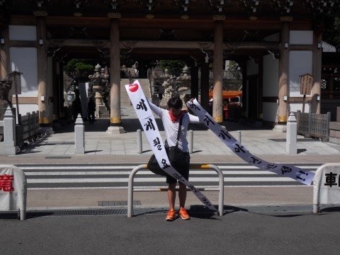 (신쇼지 정문인 총문에서의 시위.. 바람이 불어서 애를 먹었습니다
