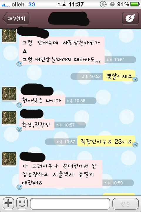 여자친구랑 같이 번호맞췄는데 산삼파는 사람한테 톡이왔슴