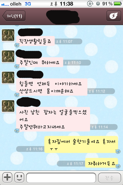 은근히 어필하면서 힘드냐 물어봄 기댈사람 만드는듯 ㅋㅋㅋㅋㅋㅋㅋㅋㅋㅋㅋㅋㅋㅋㅋㅋㅋㅋㅋㅋㅋㅋ