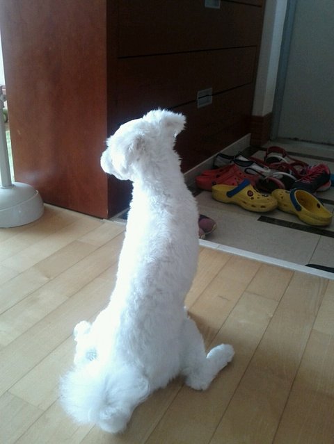 저번에 피자를 주문한적 있었는데 발 소리가 들리자마자 뽀뽀가 뛰어갈 기미를 보이기 시작함