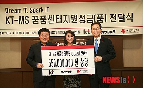 KT-MS 꿈품센터 지원 성금전달식이 열려 5억5000만원 상당의 IT 기기와 소프트웨어를 사회복지공동모금회에 기탁했다고 하네요