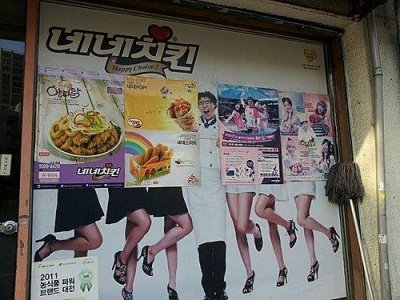 (네네치킨 모델이 티아라인데... 다 가리고 가운데 유느님만 살려놓음ㅋㅋ)