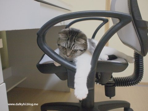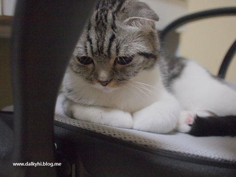 의자에 앉으려고 하는데...앙즈가 떡하니... 무게 잡고 있네요,...ㅎㄷㄷ