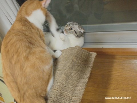 저래 째려보면...쿨럭.... 그래서 저는 .. '앙즈야~ 앉으려고 그런거 아냐~ 방석 깔아줄려고 그랬지~'