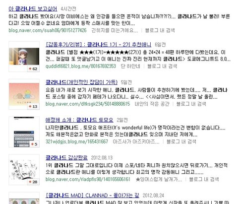 한가지 예시로 어떠한 애니메이션의 검색후 나오는것들입니다