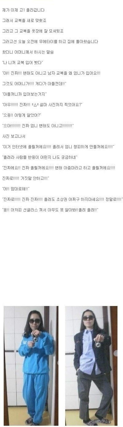 "아!! 진짜!!! 변태도 아니고 남자 교복을 왜 엄니가 입어요 !!