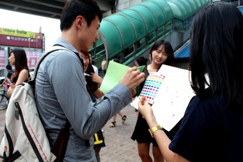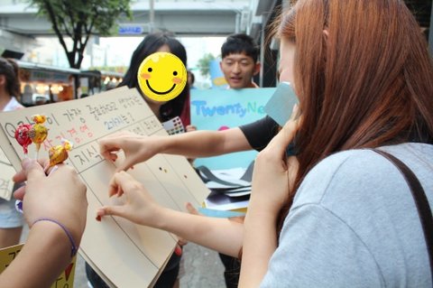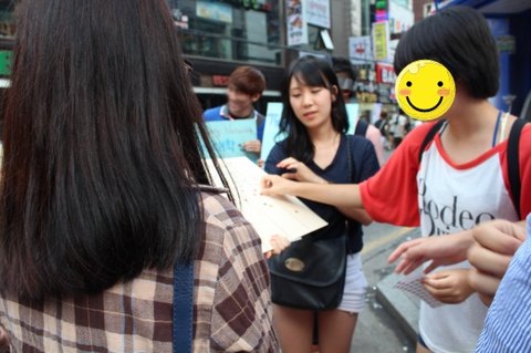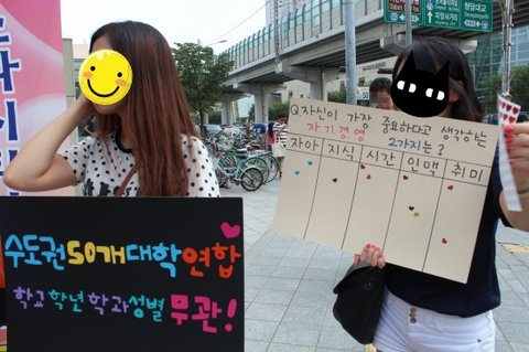 드디어 저희는 '건대 입구역' 근처에서 첫번째 외부홍보를 시작하게 되었습니다. ![]()
