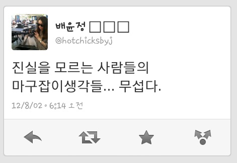 지연이 화영을 감금폭행했다며 큐리 빼고 모두 죄값을 받을거라고 트윗한 사람.