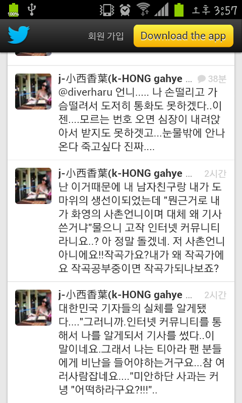진짜 티아라 백댄서 트윗. 현재 이 분의 화영과 효영은 언팔 상태.