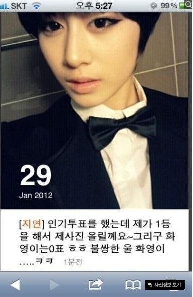지연 트윗을 보면 인기투표같은 것보다 남장을 한 자신에 대한 글을 쓰며 저 사진을 올림.