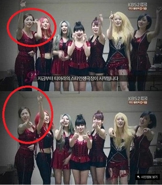 티아라 멤버들은 박수치고 웃고 있지 저렇게 같이 춤추지 않음.