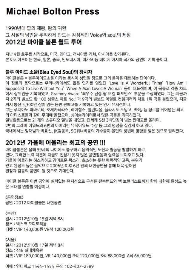 -마이클볼튼 서울 공연 홍보 영상-