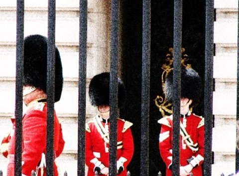 1. 교대식이 열리기 직전, 왕궁 앞뜰에 모여있는 근위병들을 왕궁정문 창살너머로 찍은 모습