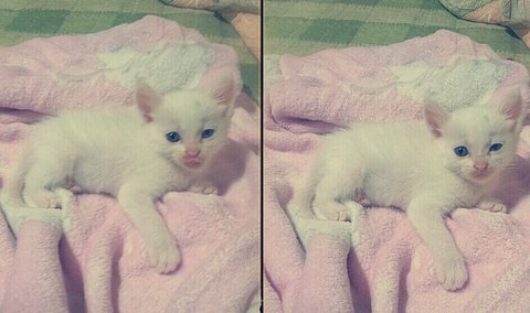어렸을때는 애기눈을자세히봐야 눈색이다르다는걸알수있었는데 커가면서 양쪽눈색이 완전히 달라지더라구요!! 보면서 씐기씐기...