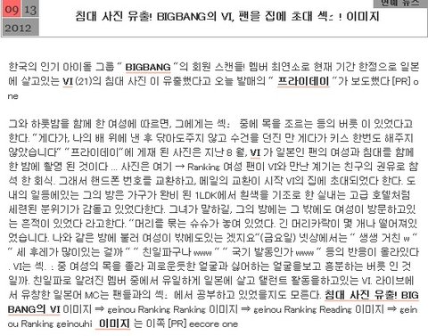연예인 스캔들 취재전문 FRIDAY 란 잡지에서 내일 발행되는 부에 빅뱅 승리와 관계 가진 일본여성이 말하는 승리의 이상한 취미 "행위시 여자의 목을 조르는"를 인터뷰한 기사가 뜨네요.
