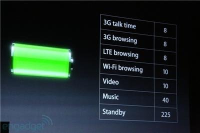 아이폰5는 배터리 용량도 매우 커졌습니다. 3G 통화 8시간 / 3G 브라우징 8시간 / LTE 브라우징 8시간 / 와이파이 브라우징 10시간 / 비디오 10시간 / 음악 40시간 / 대기 225시간입니다. 이외에도 빨라진 이미지 캡쳐 속도, 더욱 높아진 해상도 등 사양/스펙적인 면에서 놀랄만큼 많이 성장했다고 합니다. 과연 아이폰5의 유저들은 어떤 평가를 내릴까요. 벌써부터 궁금합니다. 아이폰5 국내에서도 빨리 보고 싶네요!