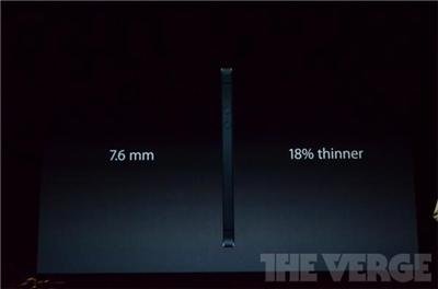 아이폰5의 두께는 아이폰4에서 1층 정도 얇아진 7.6mm이고 사진에서 보이듯 아이폰 4S 대비 약 18% 가량 얇아 졌습니다.
