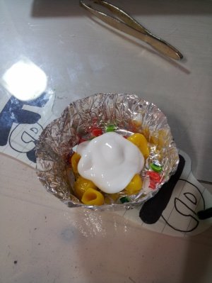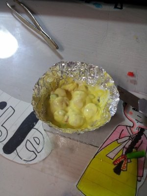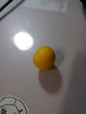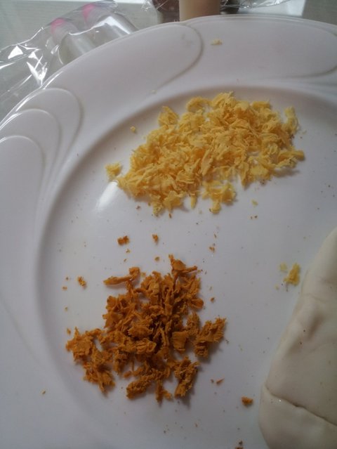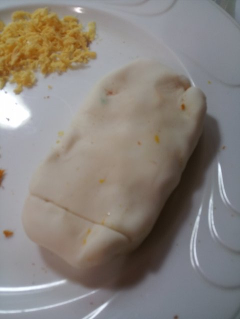 짜잔~ 노란색점토를 둥그렇게 해놓고 그 위를 얇게 흰색점토로 덮어주었답니당~