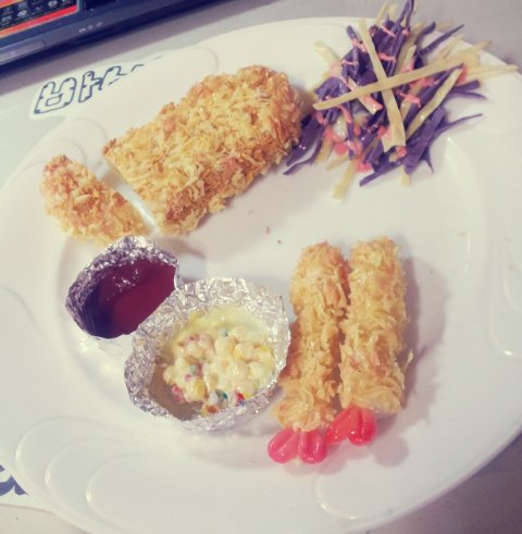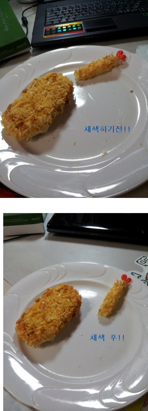 저기있는 진갈색은 약간 탄 부분을 표현하기위한 튀김가루 ㅋㅋㅋ