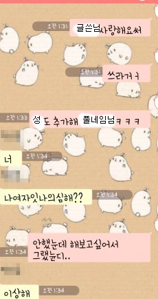 글쓴이-(번호로 찾기를 통해 친구추가)했어 어서 받아줭><