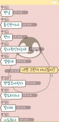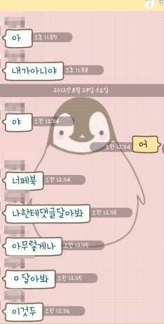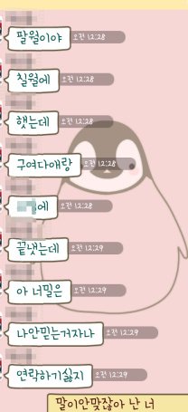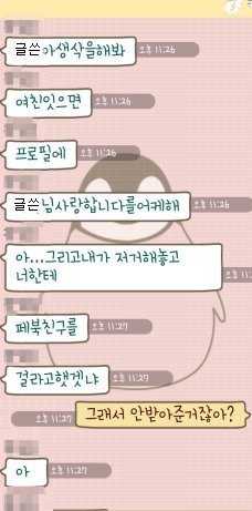 나는 메세지창에서 씹혀서 분한 마음으로 지웠던 여자친구에게