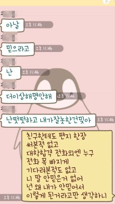 나는 아직 저 ㅅㅐ끼 여자친구분이랑 연락이 닿지 않았음