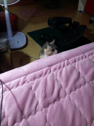 침대 아래에서 올려다 보는 김고양이