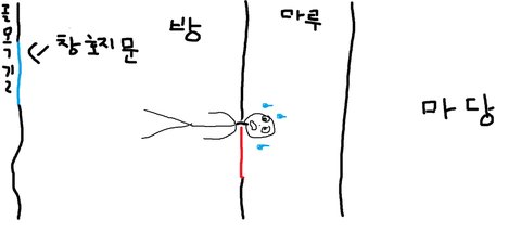 말그대로 방옆에는 바로 골목으로 나가는 창호지열닫이문이 있음 이문역시 열때 끼이익 소리가 나긴하지만