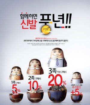 한 켤레 살때 5% , 두 켤레는 10%, 세 켤레는 20%