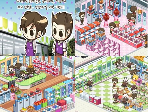 - 게임내용 : 웹툰, 애니메이션의 캐릭터들이 그대로! 와라편의점으로 편의점을 운영.