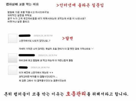 그리고 두번째 사진은 잘 안 보이지만 코 막고 있는 거 같네요.