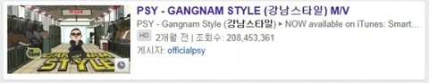 방금전에 강남스타일 유툽 조회수 2억뷰를 달성