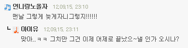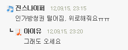 평소 아이유와 댓글놀이중 친구가 놀린다~,야광봉이 창피하다~