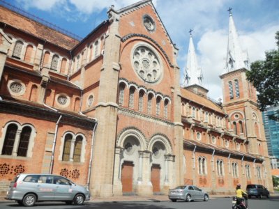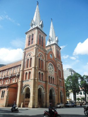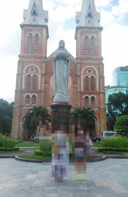 통일궁은 그닥 메리트가 없어보여 입장료를 내고 들어가지 않고 철창사이로 사진만 찍고 다음 장소인 노틀담성당으로 이동 고우고우!! 여기서 사진 찍으니 오토바이 기사분들이 자꾸 관광명소 사진이랑 한국 여행객분들의 방명록? 이라해야하나 편지가 담긴 앨범을 보여주며 오토바이 투어하라고 특별히 싸게 해주겠다 했지만! 나중에 바가지 씌운다는 얘기도 있고 저희는 저희만의 도보여행을 꿈꿔왔던지라 나중에 기되면 하겠다고 오늘은 우리끼리 시작해보겠다며 사양했어요 ^^;