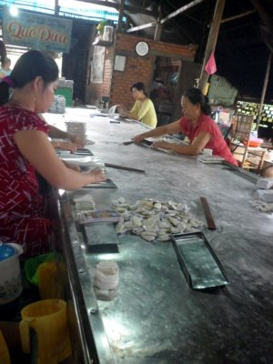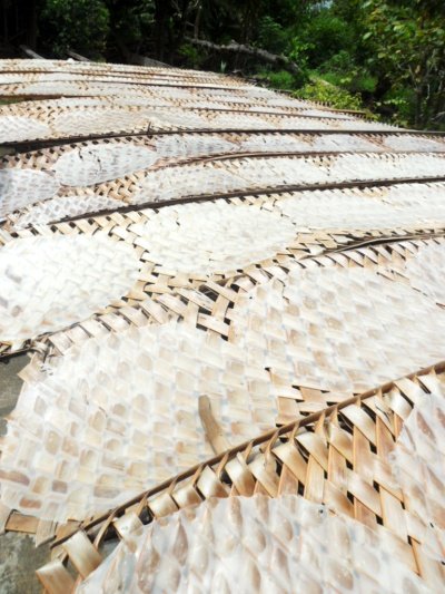 제일 첫번째로 방문했던 라이스페이퍼를 만드는 곳이에요! 이렇게 햇볕에 쫙쫙 펼쳐놓고 말려요!