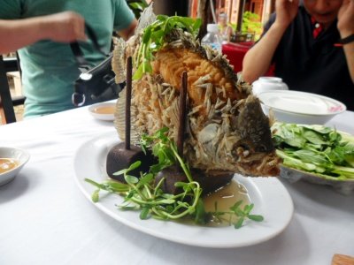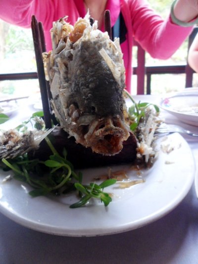 이 생선이 Elephant ear라는 물고기인데요 살아있는채로 기름에 튀겨진다네요