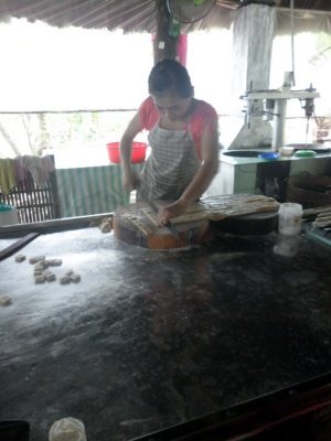 엿처럼 길게 나온 코코넛캔디를 저렇게 칼로 샥샥 자르면 옆에이던 아주머니들 일일히 손으로 포장해요!