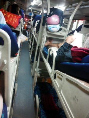 시간이 어느덧 다 되어서 신또를 들고, 여행사에 맡겨두었던 짐을 찾아서 앞에 대기하고 있던 슬리핑 버스에 탑승합니다! 우리가 이동할 곳은 호치민시에서 6시간정도 떨어져있는 곳이어서 저렇게 침대차로 예약했어요! ㅋㅋㅋㅋ가는동안 편~하게 잠만 자면 되니깐 좋은듯해요!!