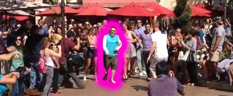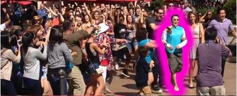 강남스타일 음악에 맞춰 단체로 말춤을 추는 대규모 플래시몹이 펼쳐지네요