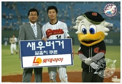 짠돌이 돋는 롯데의 만행. 경기의 수훈을 한 선수에게 고작 롯데리아 새우버거 쿠폰을 줬다는데..