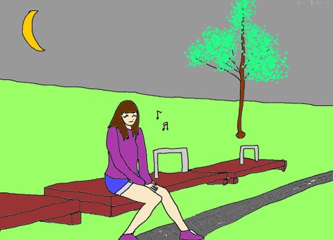늘 그렇듯 mp3로 음악을 들으면서 벤치에 앉아있다.