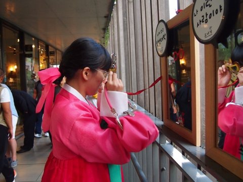 한복 카페 회원님들과 한복 차림으로 경복궁에서 만나기로 했어요.