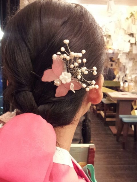 언니가 빌려주셔서 꽂고 다닌 뒷꽂이.